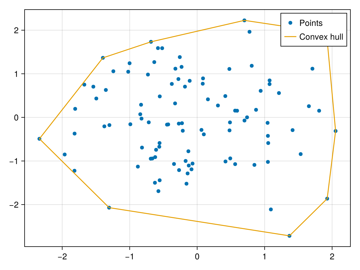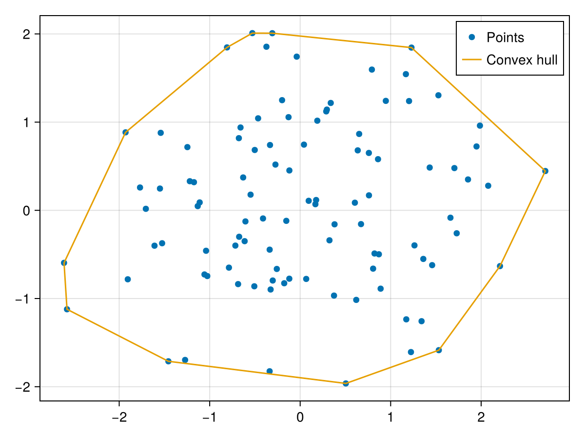 lines!(a, hull_poly; label = "Convex hull", color = Makie.wong_colors()[2])