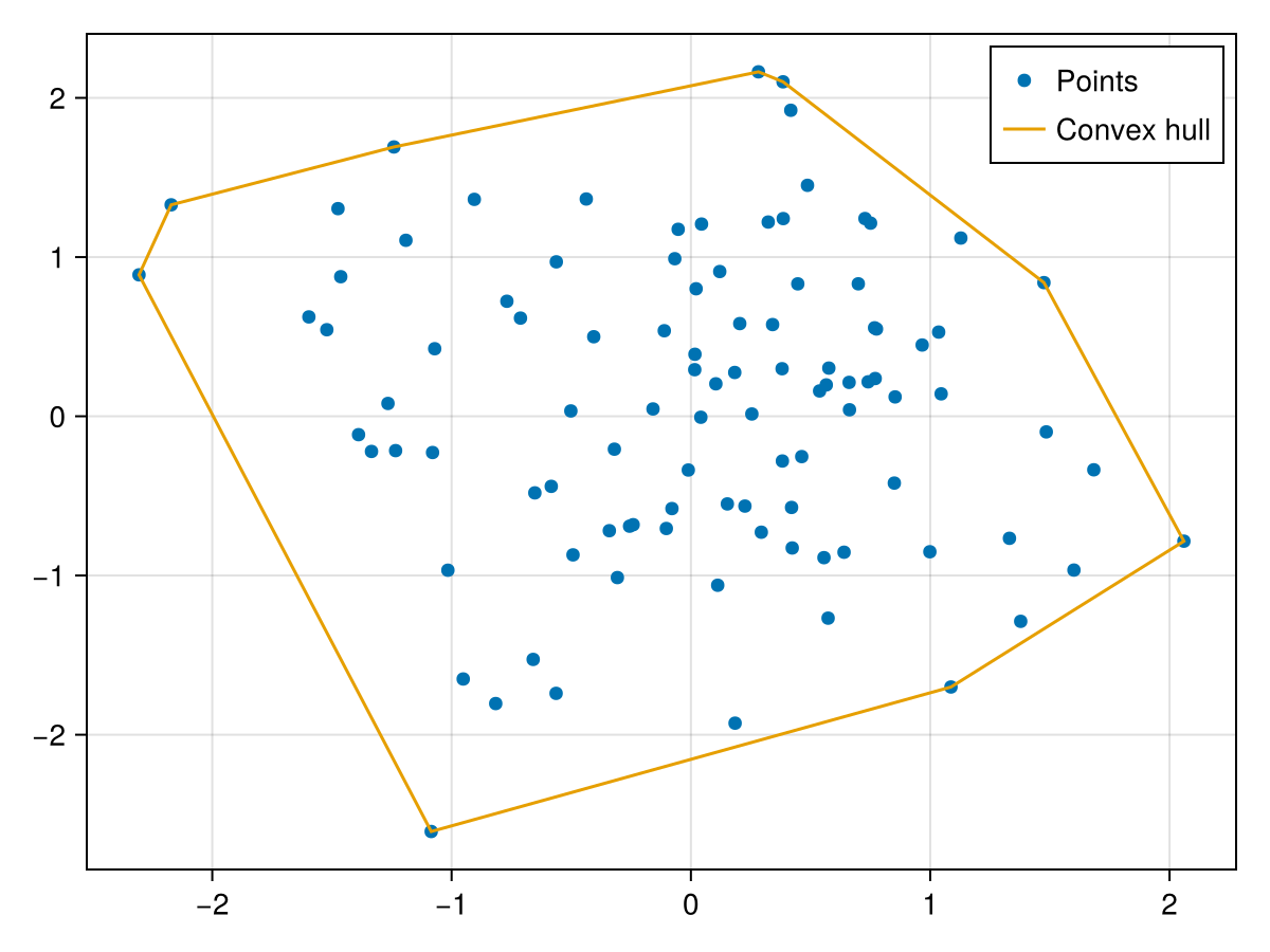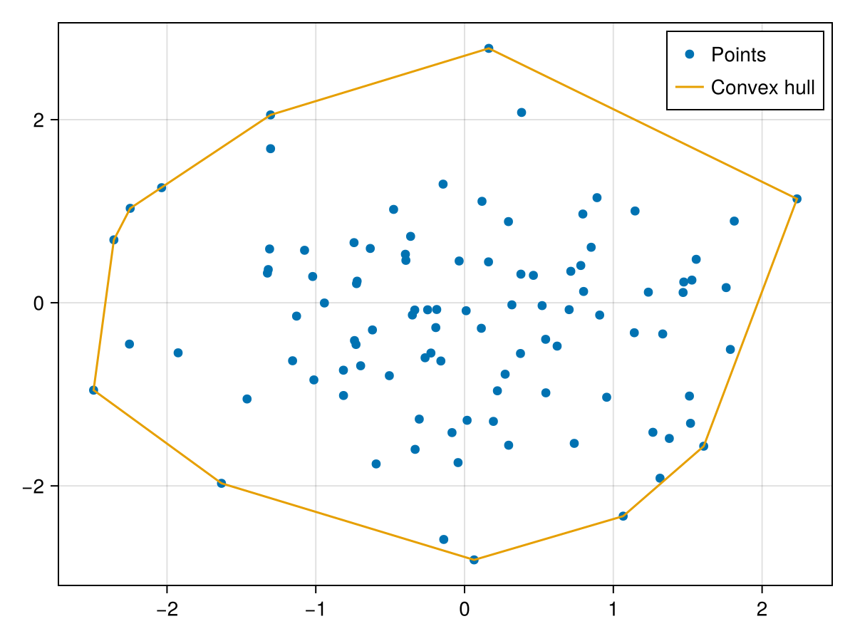Uses [`DelaunayTriangulation.jl`](https://github.com/JuliaGeometry/DelaunayTriangulation.jl) to compute the convex hull.
