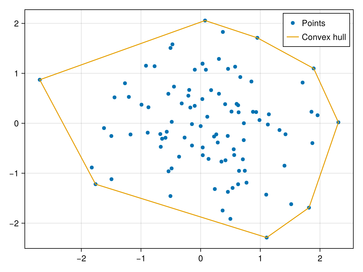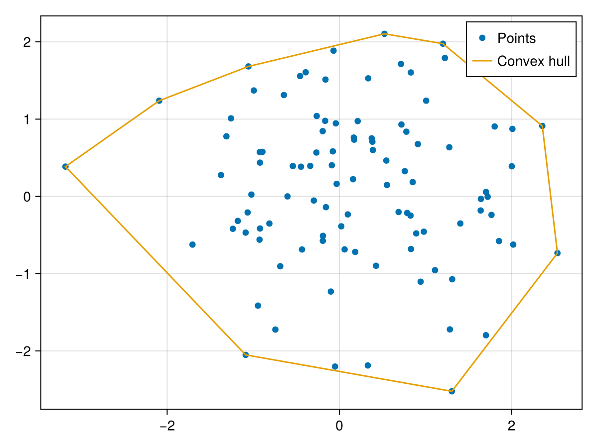 lines!(a, hull_poly; label = "Convex hull", color = Makie.wong_colors()[2])